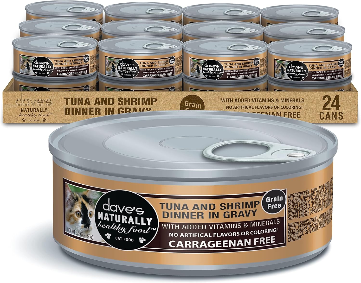 Dave's Pet Food Grain Free Wet Cat Food Gravy (Tuna & Shrimp Dinner in Gravy), Naturally Healthy Canned, Added Vitamins, 5.5 oz Cans (24 Pack)