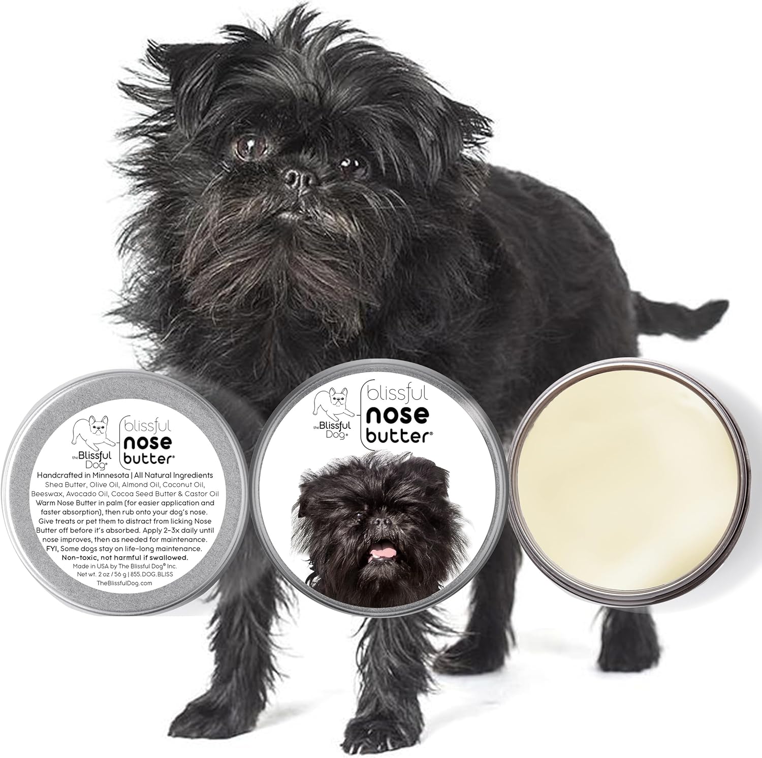 The Blissful Dog Affenpinscher Nose Butter for Dry, Cracked Skin, Lick-Safe Dog Nose Balm with Moisturizing Shea Butter, Almond, Olive, and Essential Oils, Pet Supplies, Uncented, 1 oz.