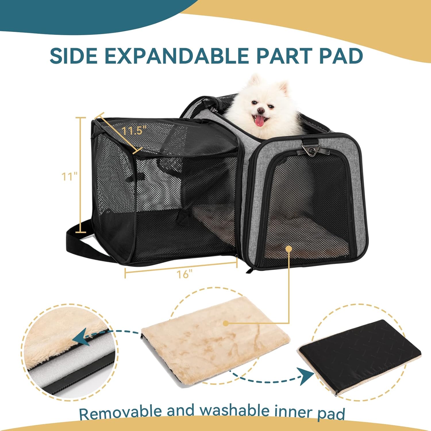 - Durable Material: The dog travel carrier is made of high-quality oxford fabric and scratch-resistant mesh; the interior fabric is splash-proof and easy to clean. Square side expansion adds more space for your pet than fan-shaped expansions. The top sides have built-in sturdy fiber poles to increase the stability of the carrier, and the poles can be removed when necessary.