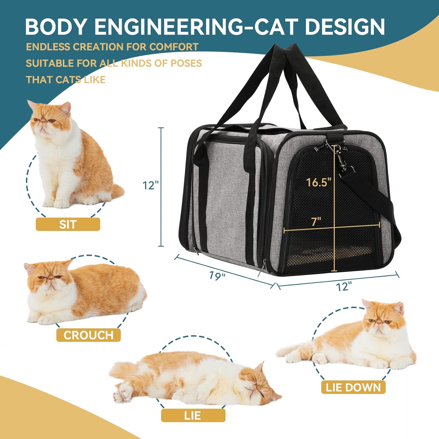 - Expandable Cat Dog Carrier: Please measure your pet before purchasing! The expandable cat carrier measures 19"Lx 12"Wx 12"H and has an extension of 16"Lx 11.5"W 11" H by expanding the mesh windows. It fits pets up to 18"Lx 11"Wx 11"H and a Max load of 18 lbs (8 kg). The product weighs 3.2 lbs