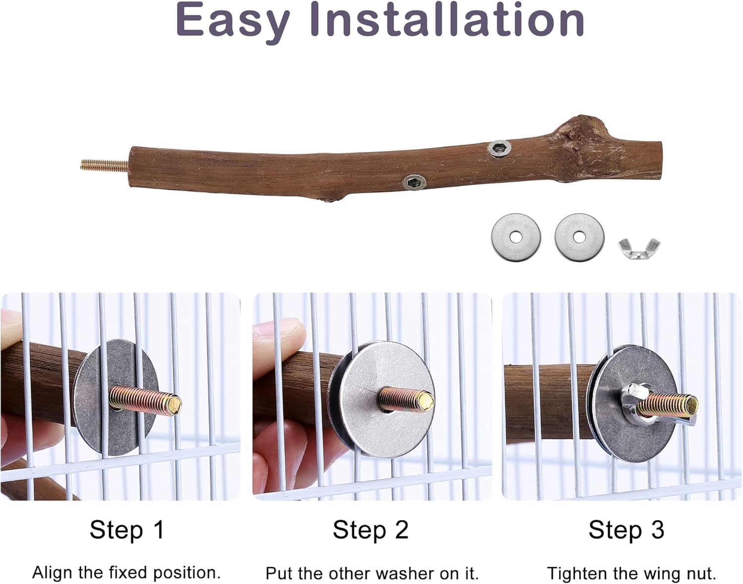 - 【Easy Installation】: The bird perches are suitable for all bird cages. Each bird perch stand toy is equipped with built-in bolt and wing nut, super easy to install and dismantle. Once intalled it will not fall off from the cage, safe for birds to rest or play on.