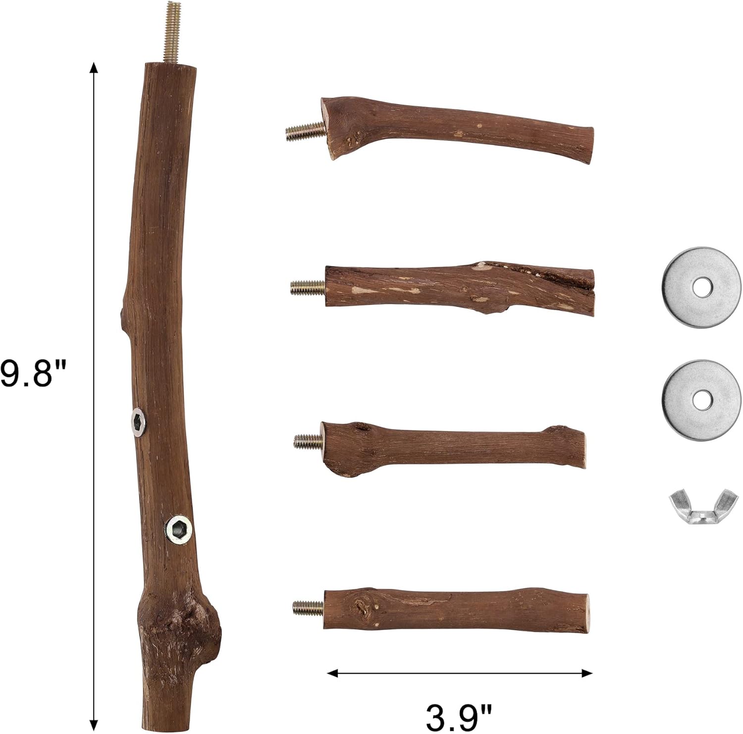 - 【Size】: Package includes 4 pcs of small perch & 1 pc of main perch. Small perch and main perch approx 3.9” and 9.8” respectively in length. Each parakeet perch toy is able to accomodate 3-4 birds at the same time, perfect for budgies, conure, parakeets, cockatiels, lovebirds or other small birds.