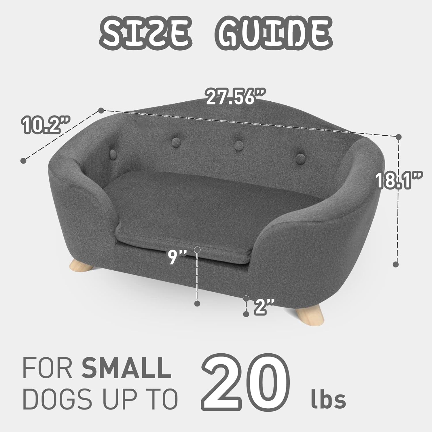 - 【Sofa Style Bed】: The interior of the pet sofa is filled with thick and soft memory foam to reduce body fatigue in puppies and provide a comfortable space for your pet, providing goose-feather-like softness, comfort and adequate support. The 2-inch legs lift the pet bed off the ground so your pet doesn't have to feel the chill from the cold ground, which is responsible for the safety of your pets.