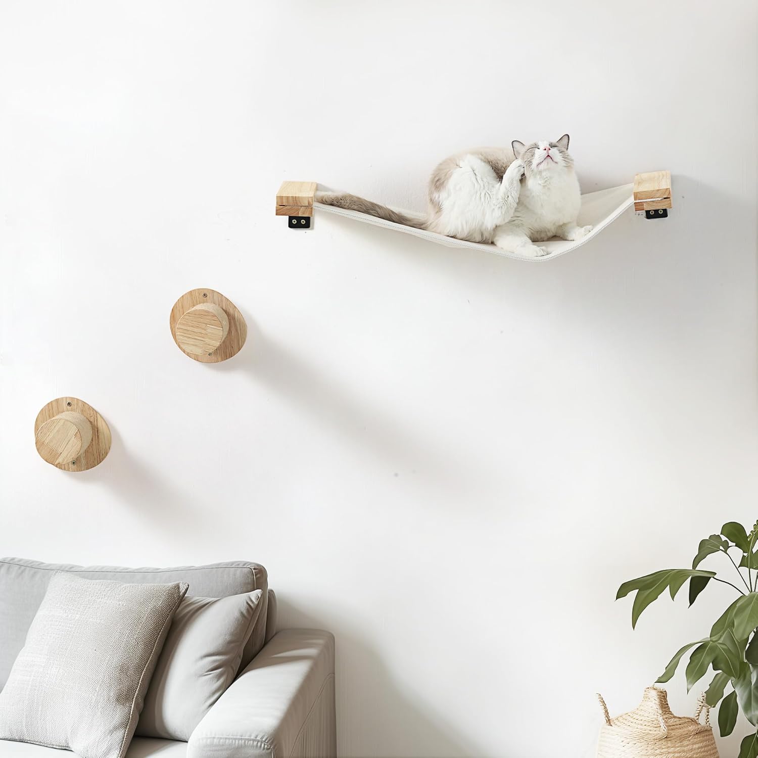 - Stable Support - FUKUMARU cat shelf set is made of solid rubber wood, safe and stable. The cat hammock and cat wall steps can easily hold cats weigh up to 30lbs, giving cats solid support.