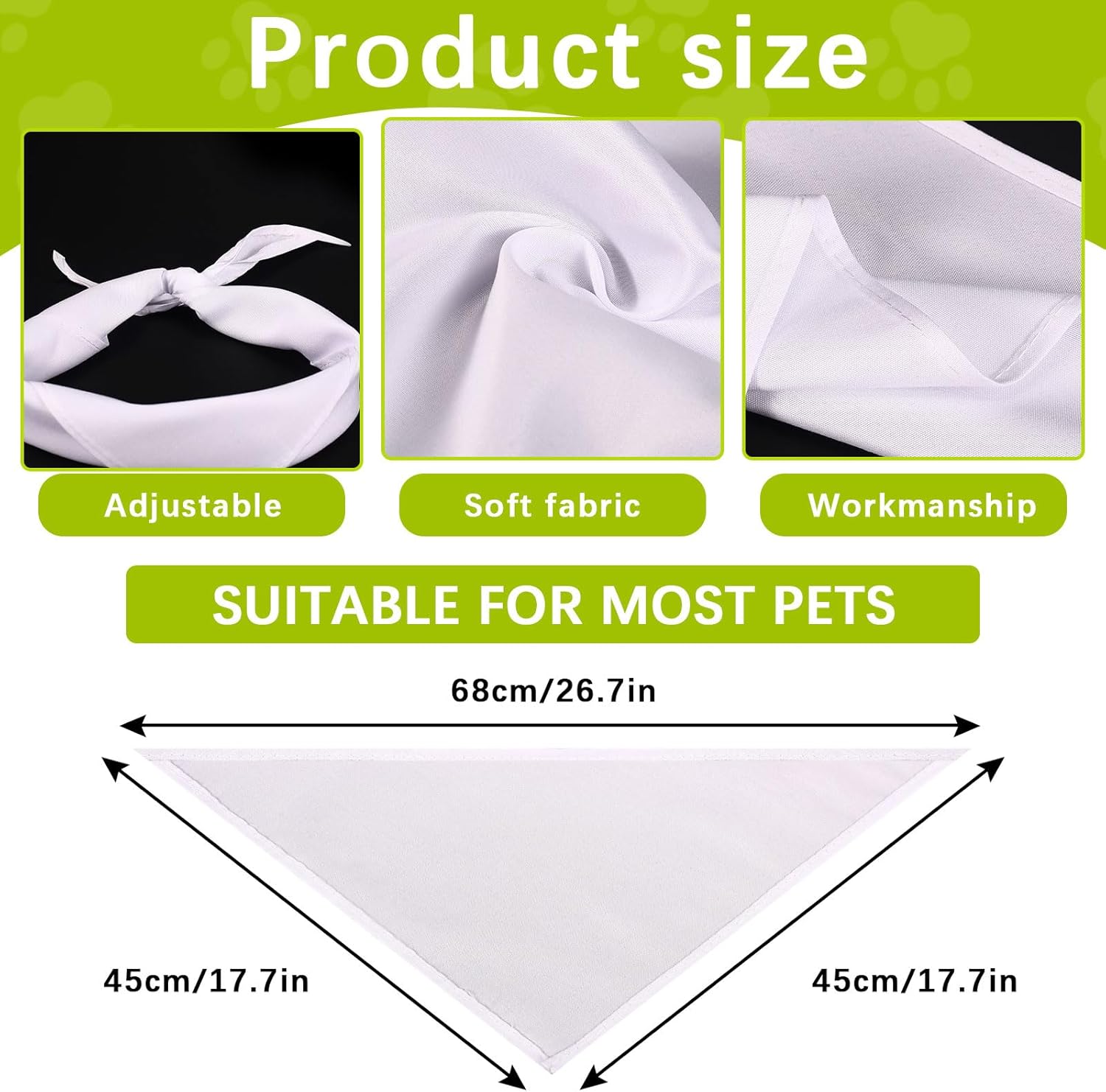 - 【Package Contents】15 PCS white dog bandana, product size: 17.7 x 17.7 x 26.7 inches / 45 x 45 x 68 cm, suitable for most small, medium or large dogs; Please measure your pet and leave room to tie the knot.
