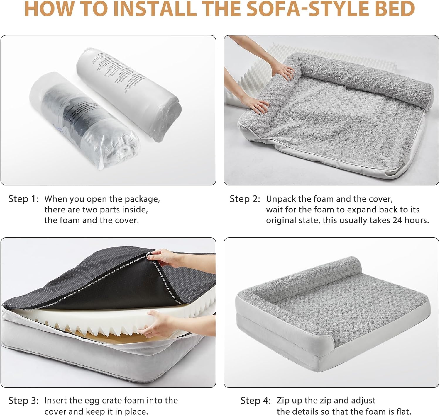 - ORTHOPEDIC FOAM DOG BED: This dog couch is made of orthopedic egg foam, the thick dog bed helps cushion pressure points, and supports the dog's joints and muscles evenly. Therefore the orthopedic dog beds can ease the discomfort of anxious older dogs, and dogs with arthritis and promote better sleep at night.