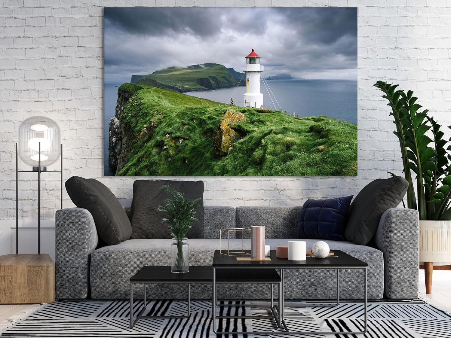 Nature Wall Art Prints - Ocean Forest Mountain Lake Canvas Landscapes - Small to Extra Large Living Room Bedroom Kitchen Bathroom Décor (Stormy Sky Lighthouse, 16L" x 24W")