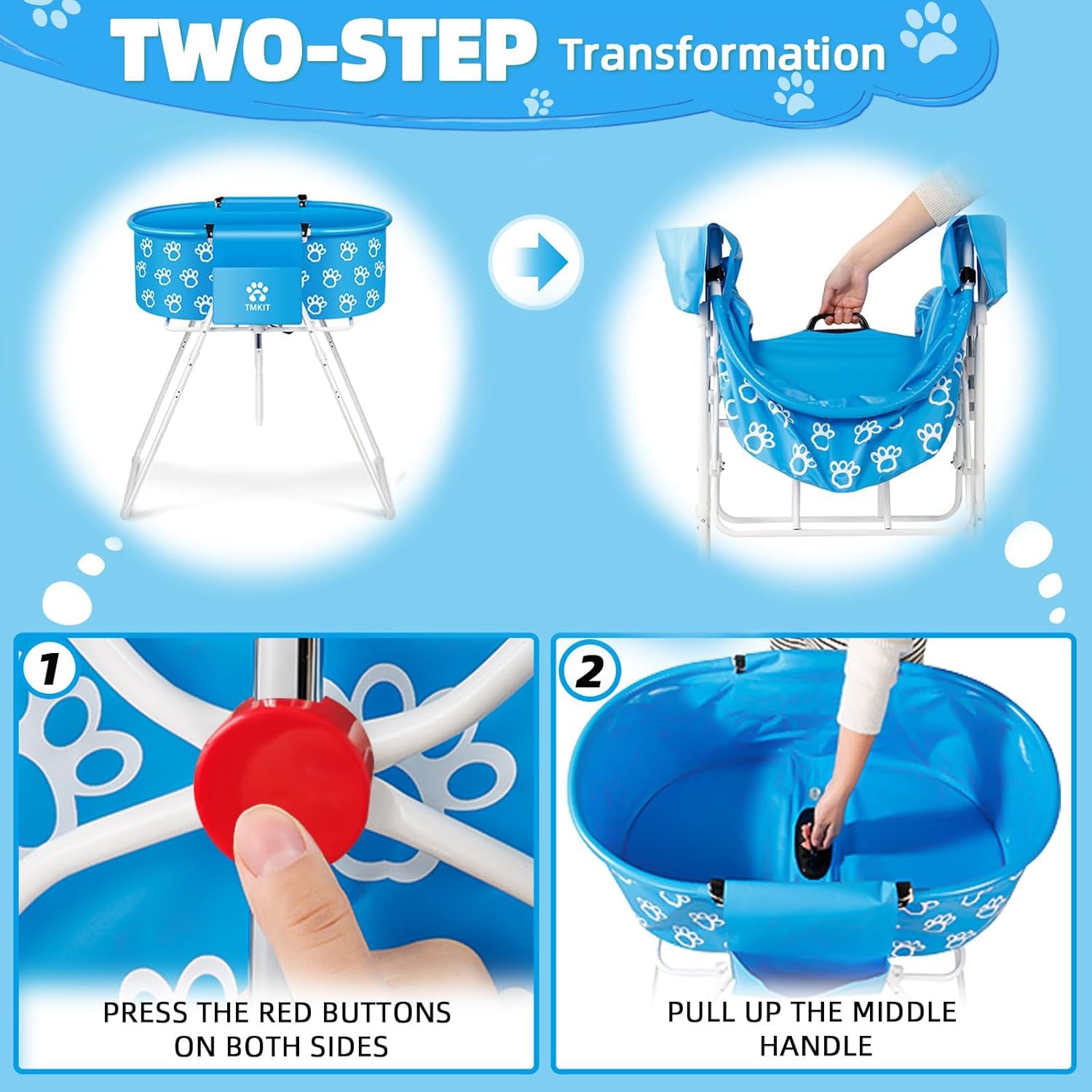 - Are you still hurt waist about bathing for your pet? Tmkit upgraded pet bathtub will solve your troubles. With safety lock, Foldable,High load-bearing capacity and Comfortable washing-height. Tmkit pet bathtub allows you to easily bathe your beloved pet without bending down, mess and No more backache.