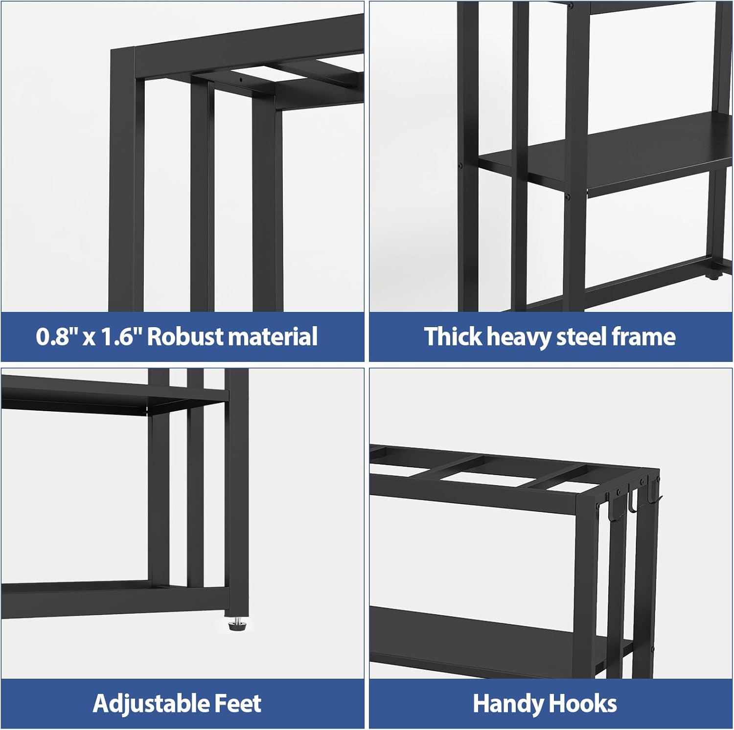 - MULTIFUNCTIONAL DESIGN: The center of the aquarium stand is a layer of pure steel shelves, which can store fish food, green plants, etc., increase your storage space and decorate your house. The extra hook design allows you to hang parcels, bags and other items, so you don't have to worry about nowhere to hang your items.