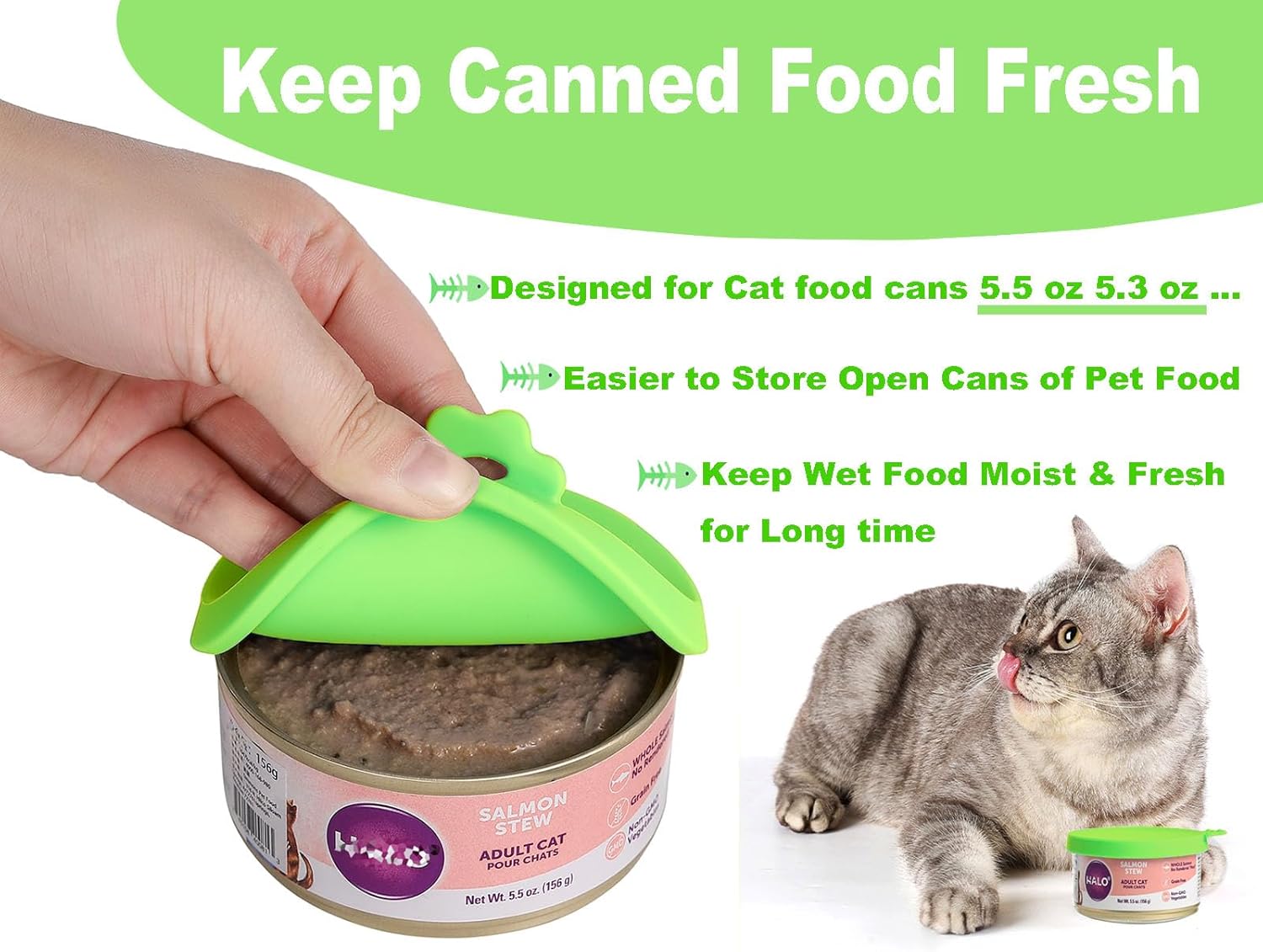- Provide a good sealing, keep your cat wet food moist and fresh. And prevents the fridge from smelling like pet food.