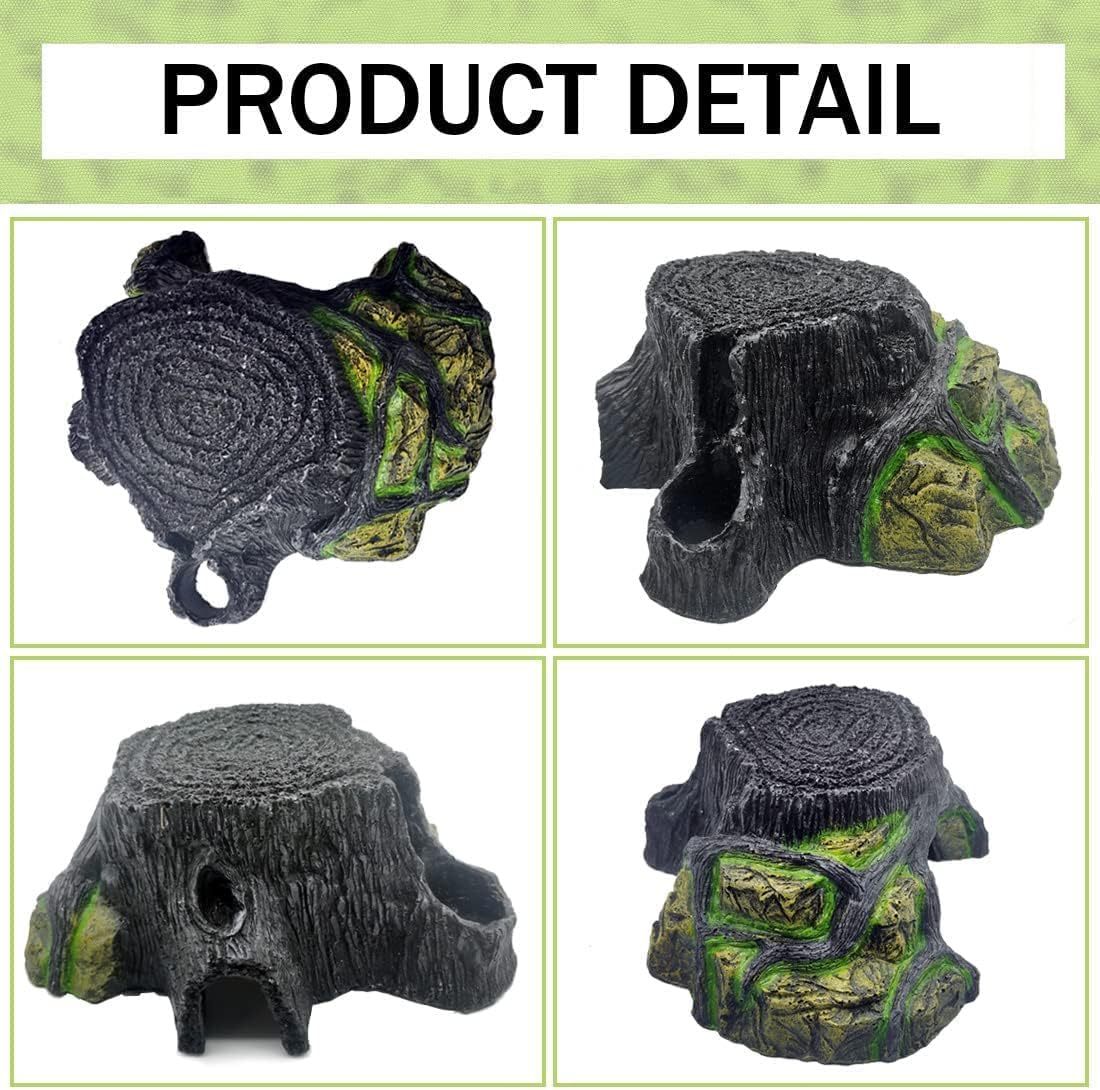- 2. Real stump look-Beautiful hand-painted details make this tree-like hideout a logical complement to your animal habitat. It will blend seamlessly with the environment you build, aquatic or dry, look lifelike and blend with nature. You can put it in an aquarium or reptile tank to create a natural and realistic habitat for your pet