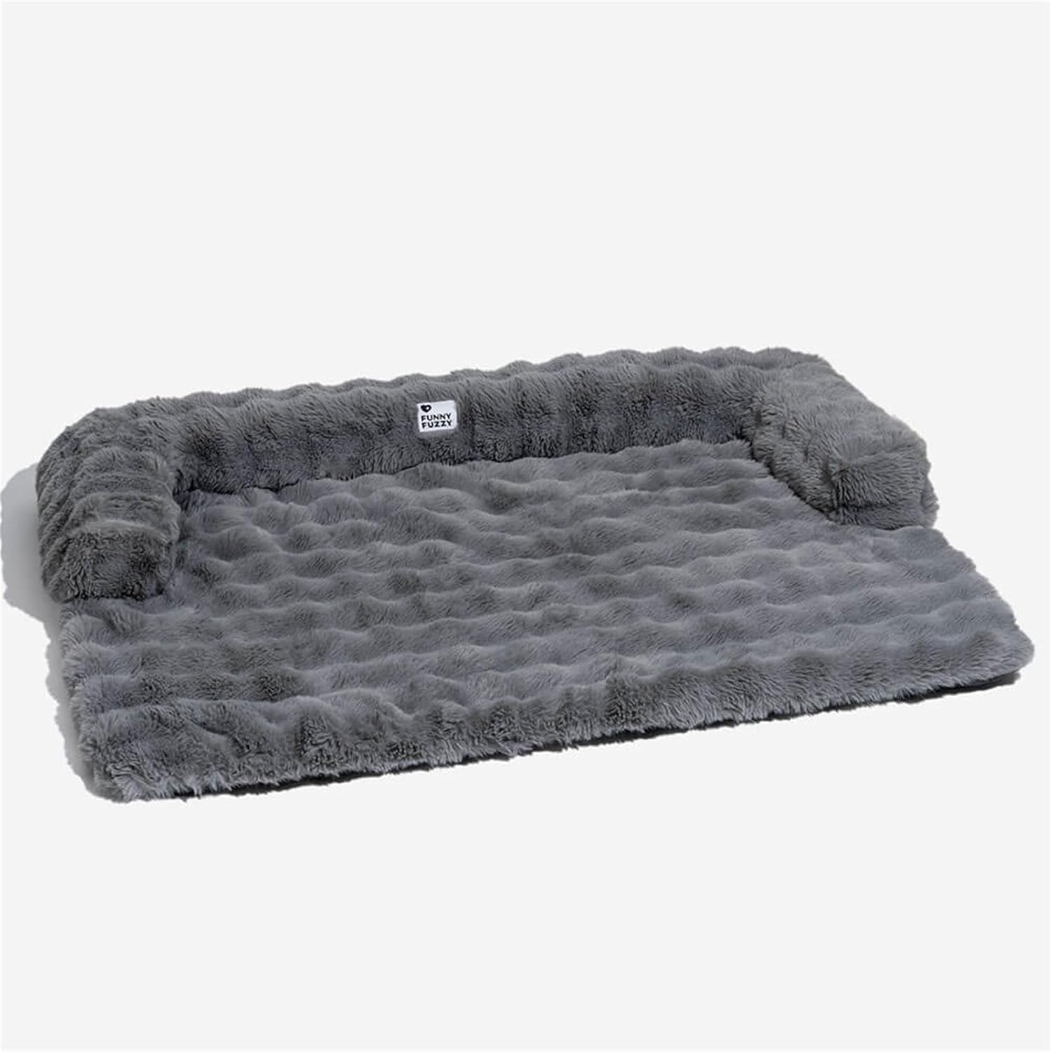 FUNNY FUZZY Pet Fluffy Fuzzy Couch Cover, Calming Washable Dog Bed Sofa Protector Pets Mat for Small Medium Dogs and Cats (Grey,33.45 × 28.35 × 5.51 in)