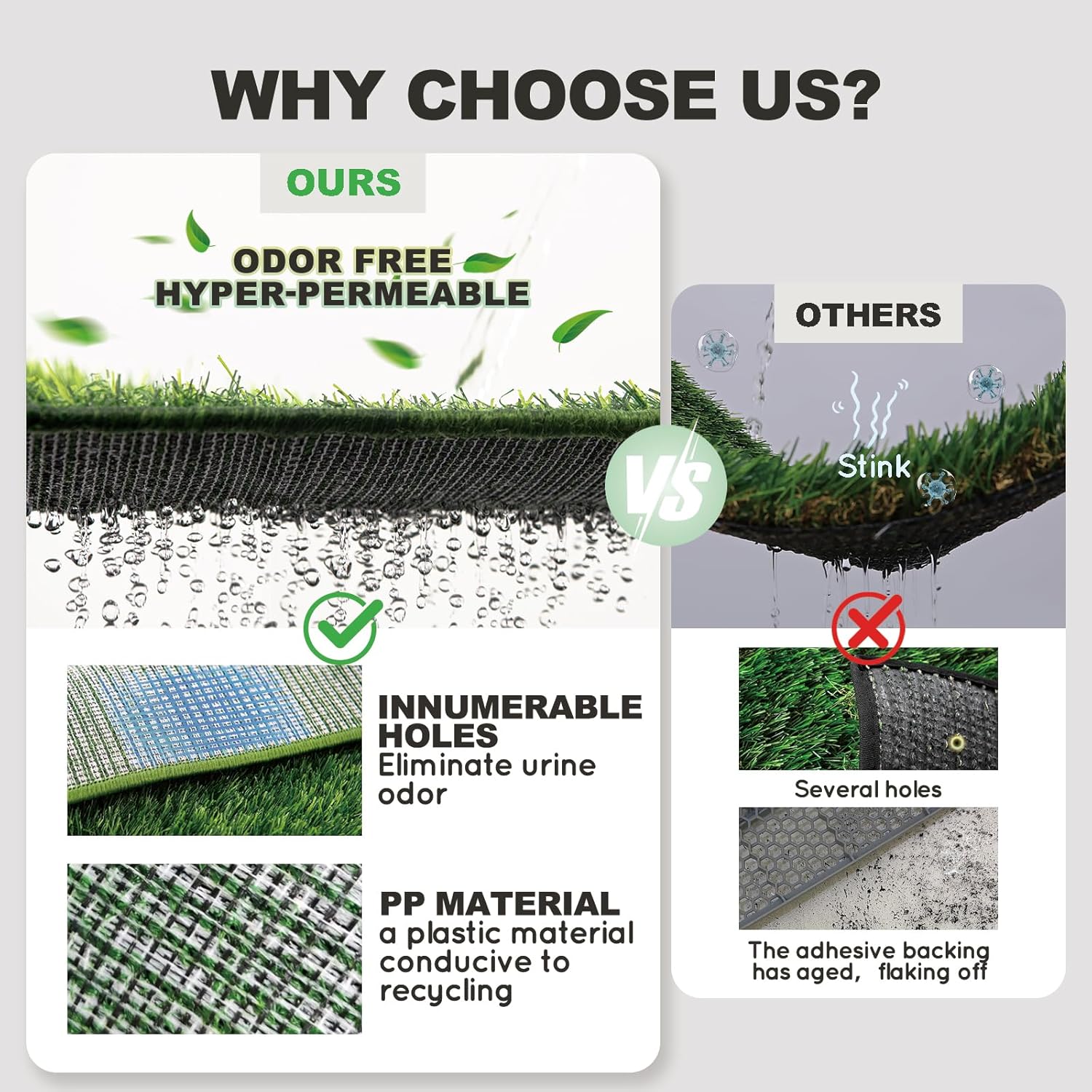 - MACHINE WASHABLE & UTTRA-Absorbent ARTIFICIAL GRASS & ODOR FREE : The new generation of ultra-absorbent dog potty grass pad is knited and melted in order to reduce urine stink, so no black rubber bottom. Urine can instantly flow into the foldable liner base below.