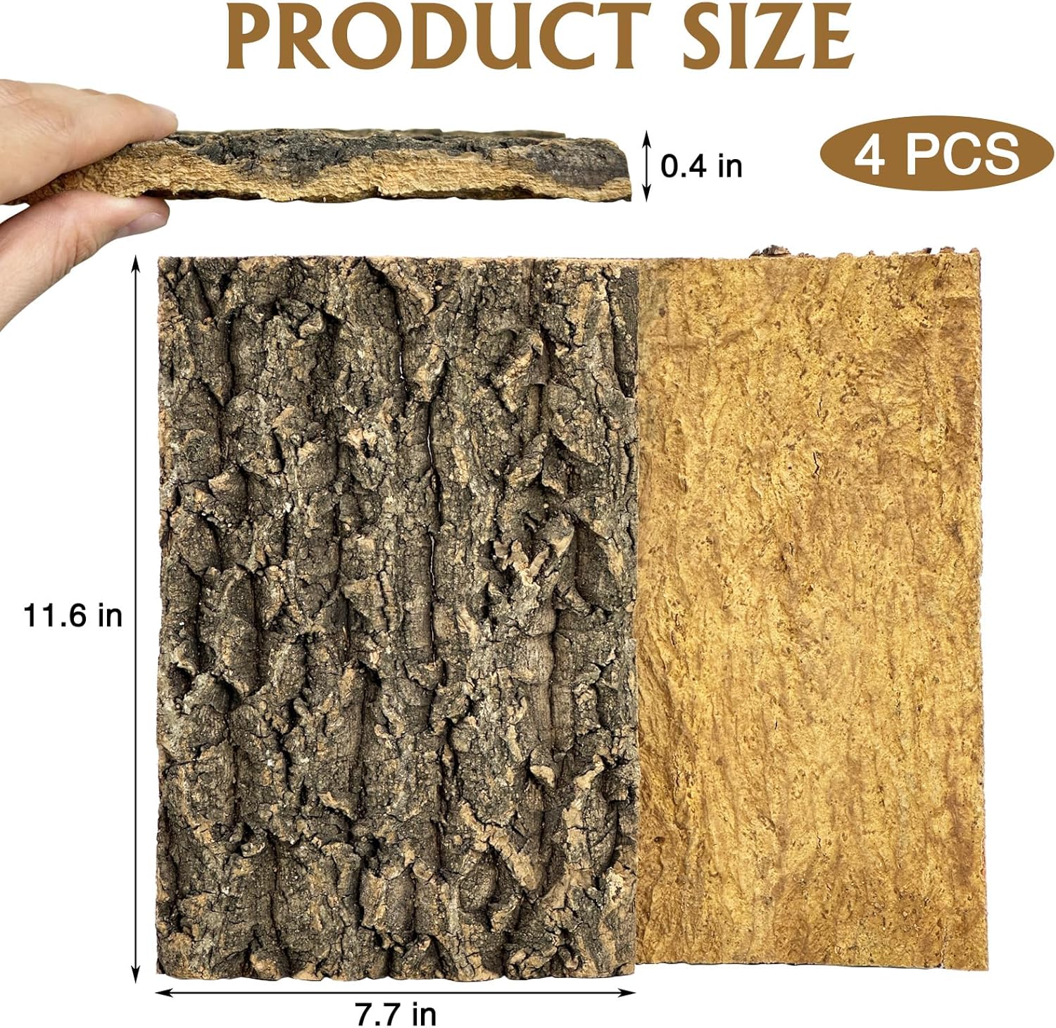 - Natural Cork Bark: Cork bark background is made from natural bark, free of additives and preservatives, with a natural rough texture that is easy for reptiles to climb. Package includes 4 PCS cork bark backdrop