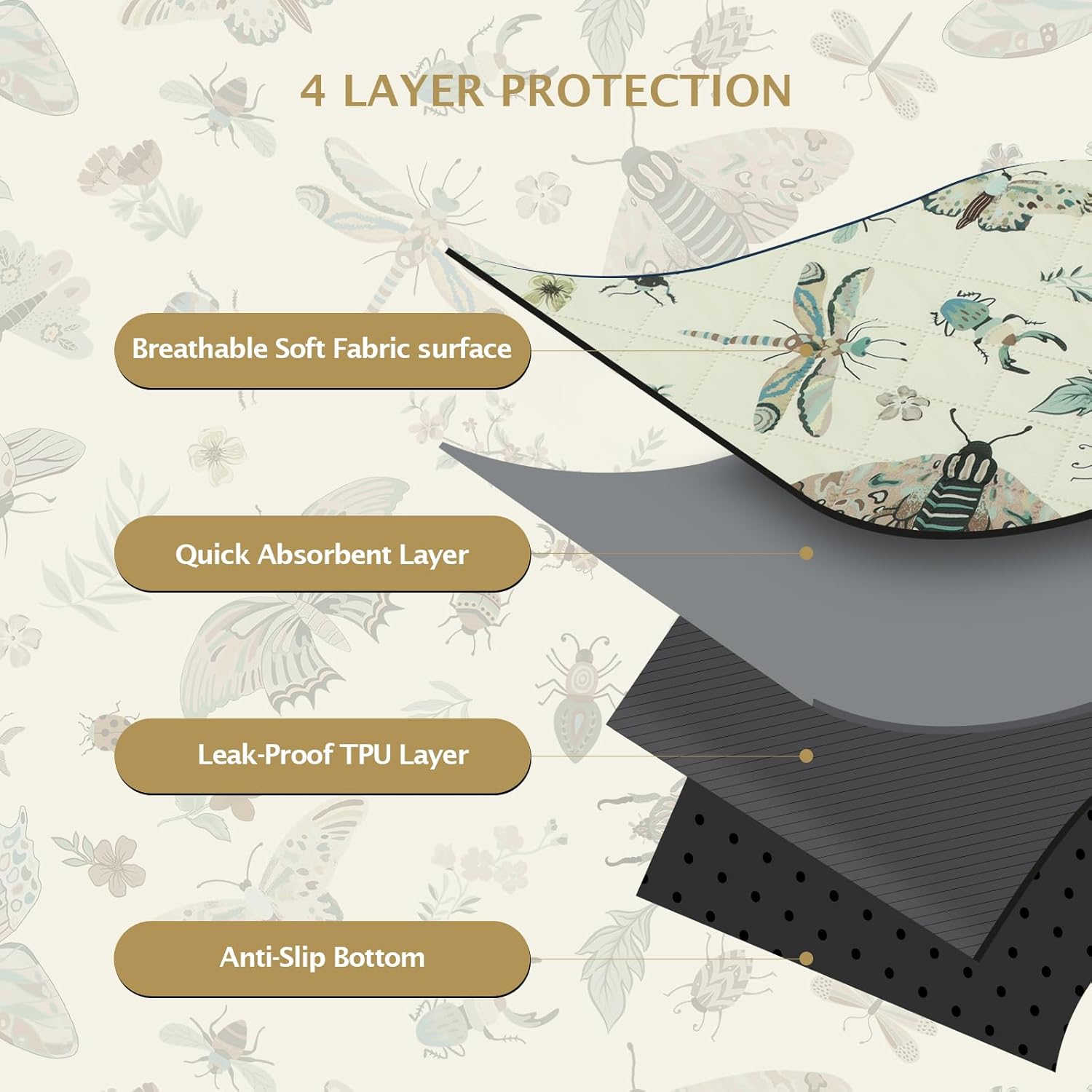 IEUUMLER Washable Pee Pads for Dogs, 1 Pack Insect Pattern Reusable Waterproof Puppy Potty Pads, Non-Slip Absorbent Pet Training Pads for Playpen Crate Bed EU014
