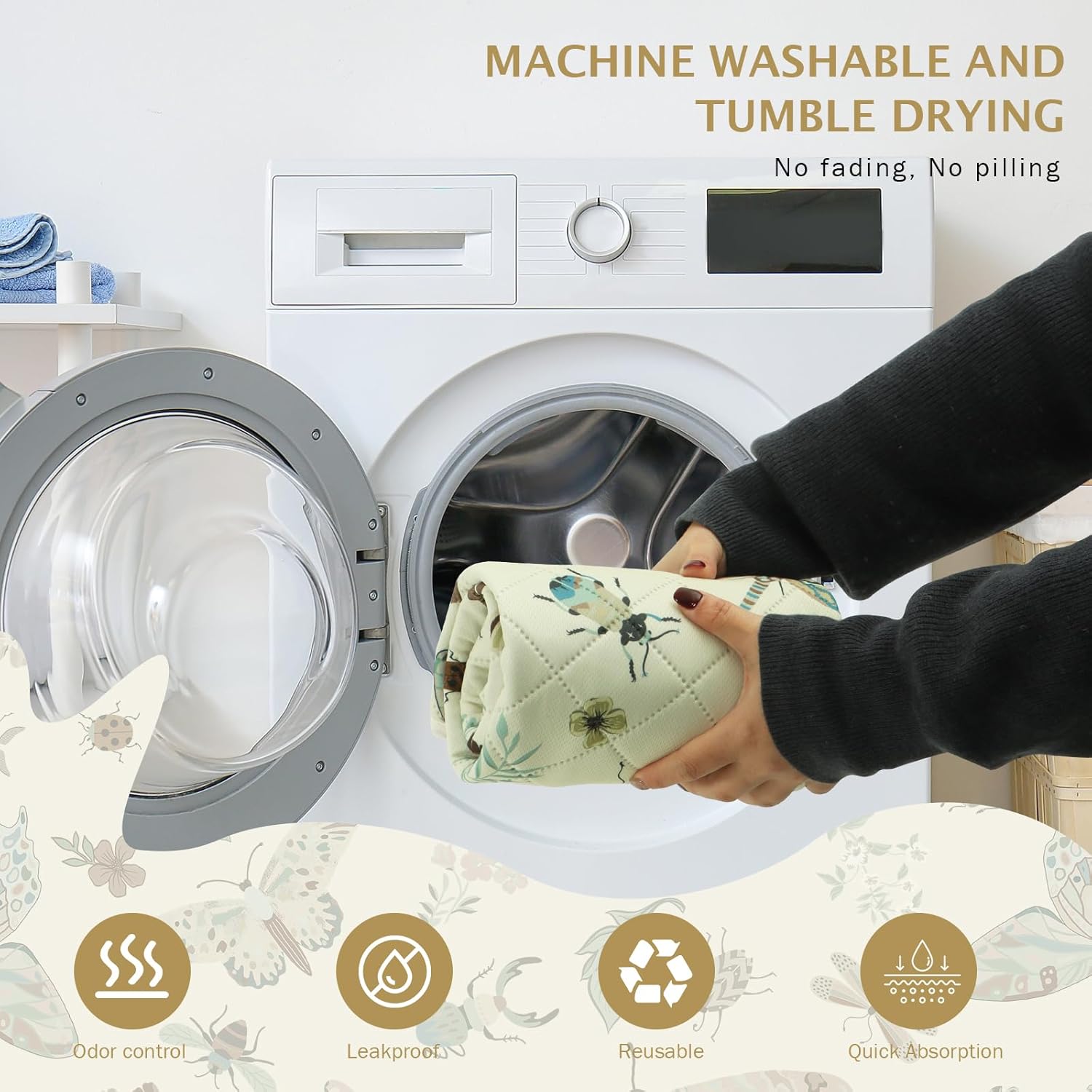 IEUUMLER Washable Pee Pads for Dogs, 1 Pack Insect Pattern Reusable Waterproof Puppy Potty Pads, Non-Slip Absorbent Pet Training Pads for Playpen Crate Bed EU014