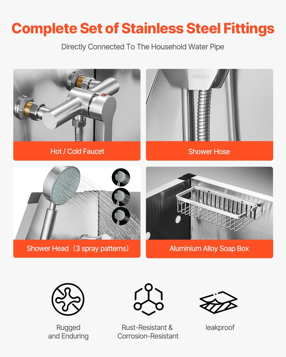- Integrated Design: The rounded seamless welding provides better sealing and makes cleaning more convenient. The dog grooming tub is featuring hot and cold faucets, a dual-control showerhead, and a soap holder, this design simplifies and streamlines the bathing process. The PE water filter board provides a non-slip draining surface, and the included duckbill buckle stops pets from accidentally triggering the door during bath time, keeping them securely inside