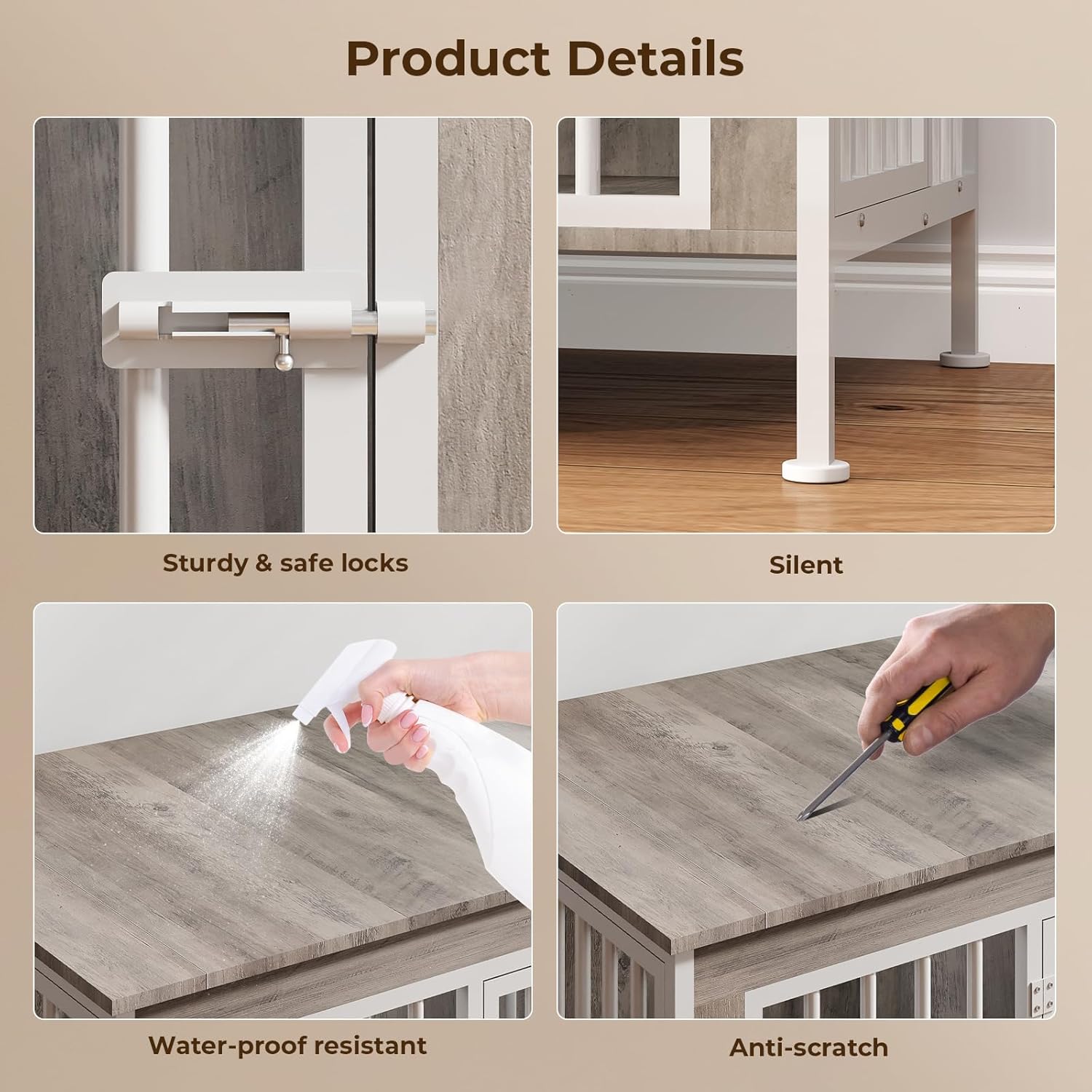 - Robot-Friendly & Easy to Clean: Raised 3.94 inches off the ground, dog crate furniture supports sweeping robots to pass through easily, making daily cleaning a breeze. The elevated base also prevents moisture buildup and keeps the bottom dry and hygienic for your pets