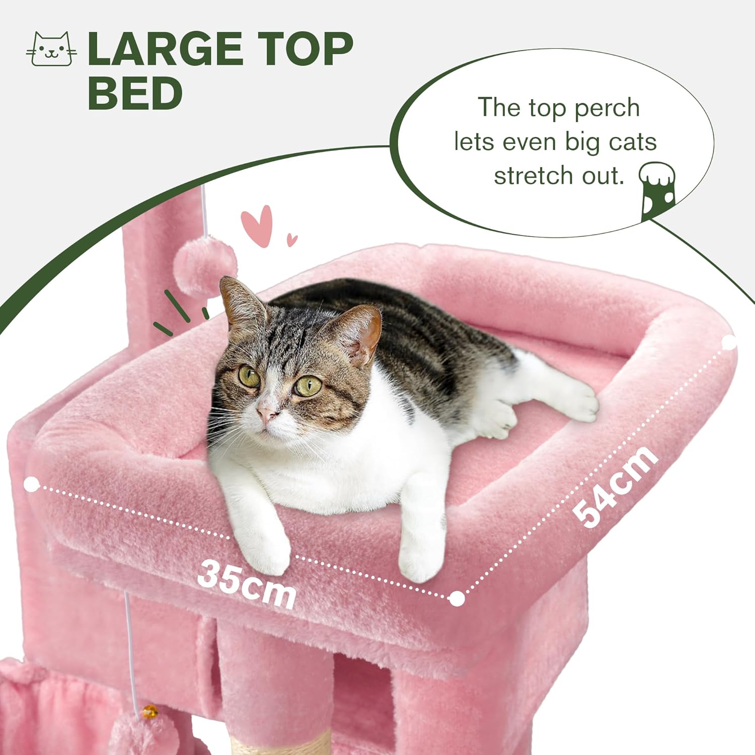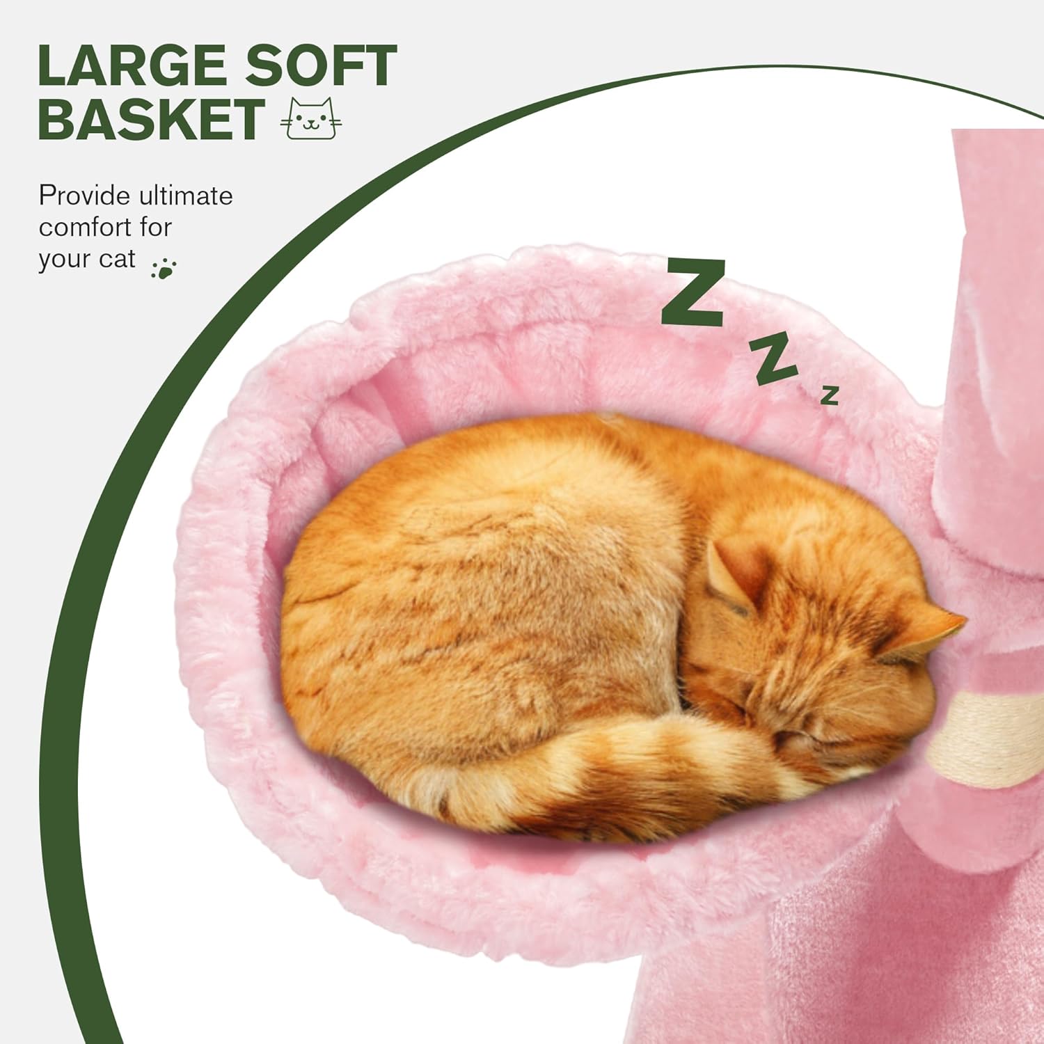 MUTICOR 66 Inches Multi-Level Large Cat Tree Tower for Indoor Big Feline/Cozy Plush Perches/Condo/Sisal Scratching Posts/Hammock and Baskets/Activity Center Play House/Wide Base/Pink